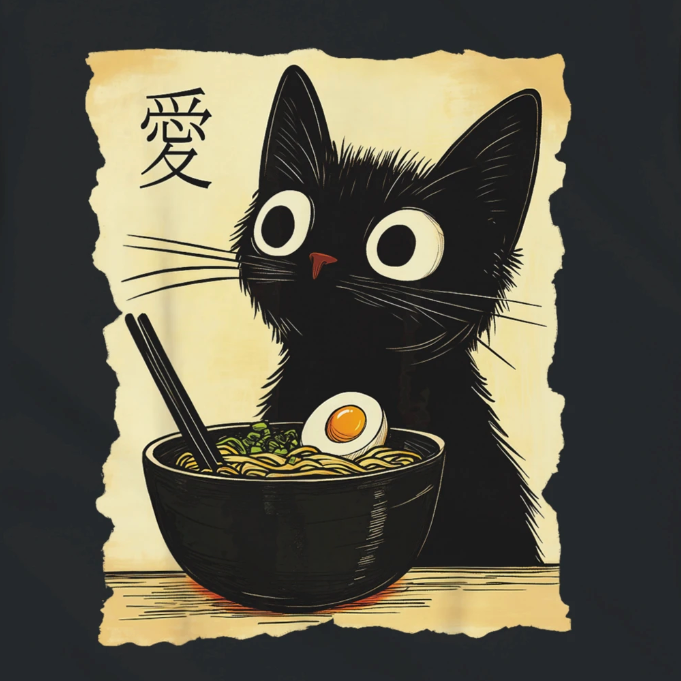 Ramen Cat Hoodie, premium softness for cat lovers and ramen fans.